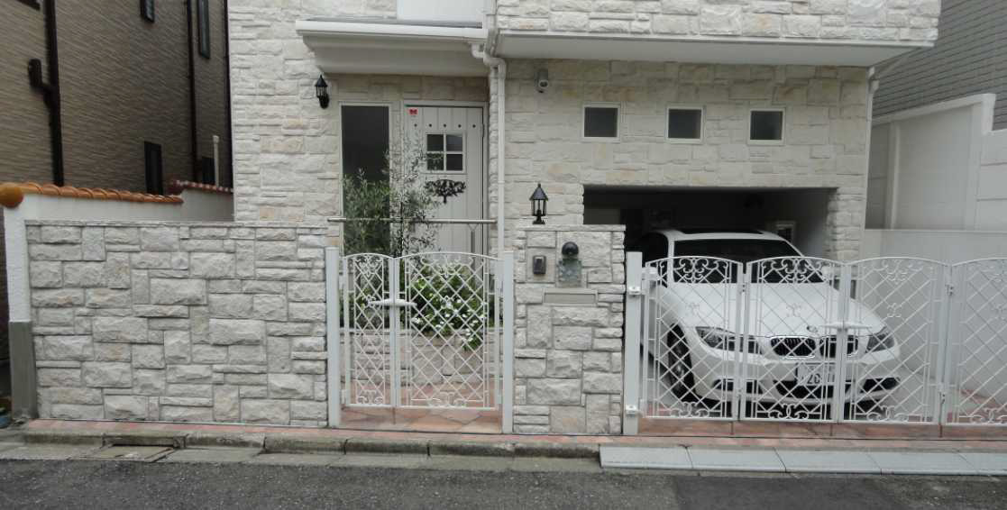 横浜市 S様邸 *車庫 門袖一式 門扉 階段